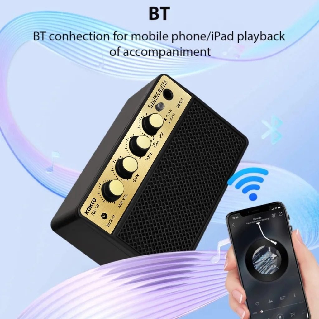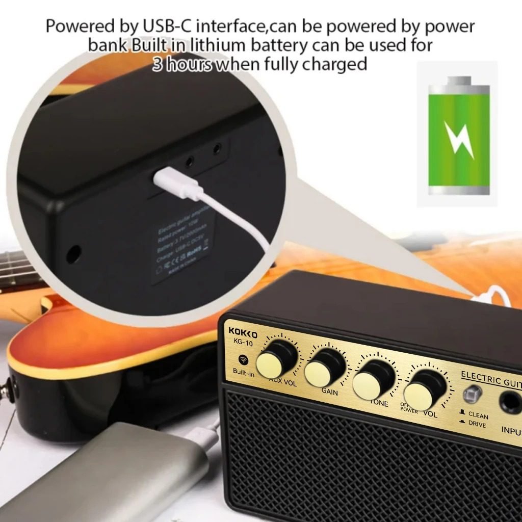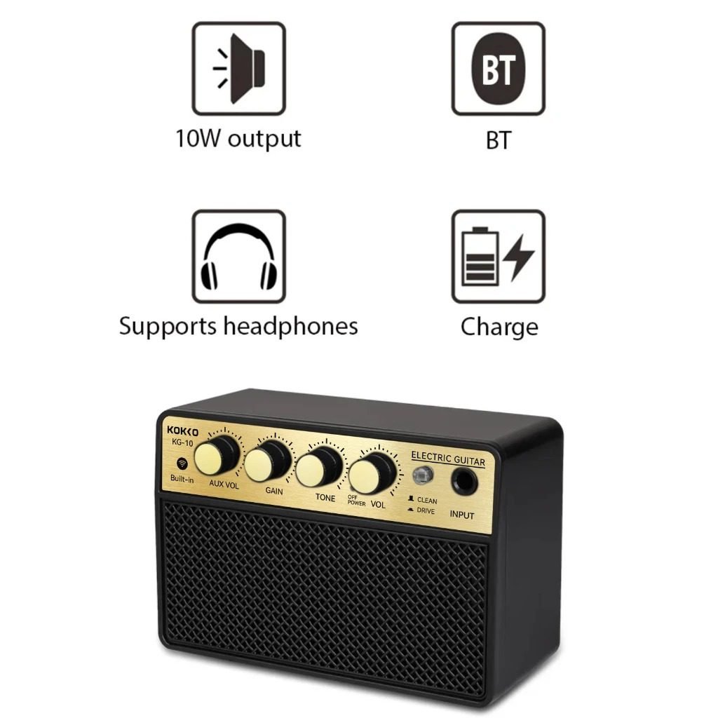 KOKKO 10W Pequeno amplificador de guitarra elétrica Mini alto-falante portátil para prática de guitarra para prática